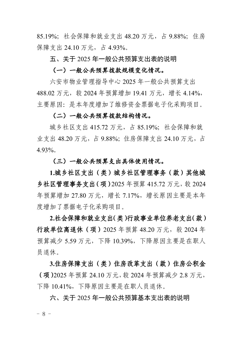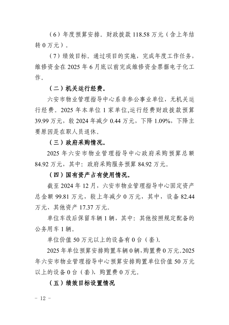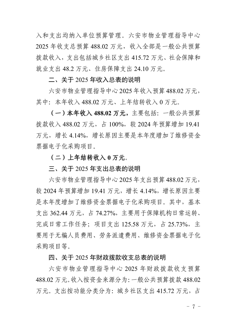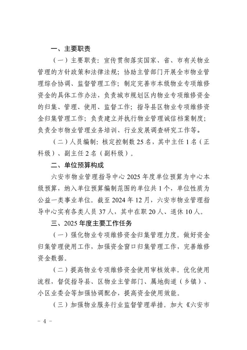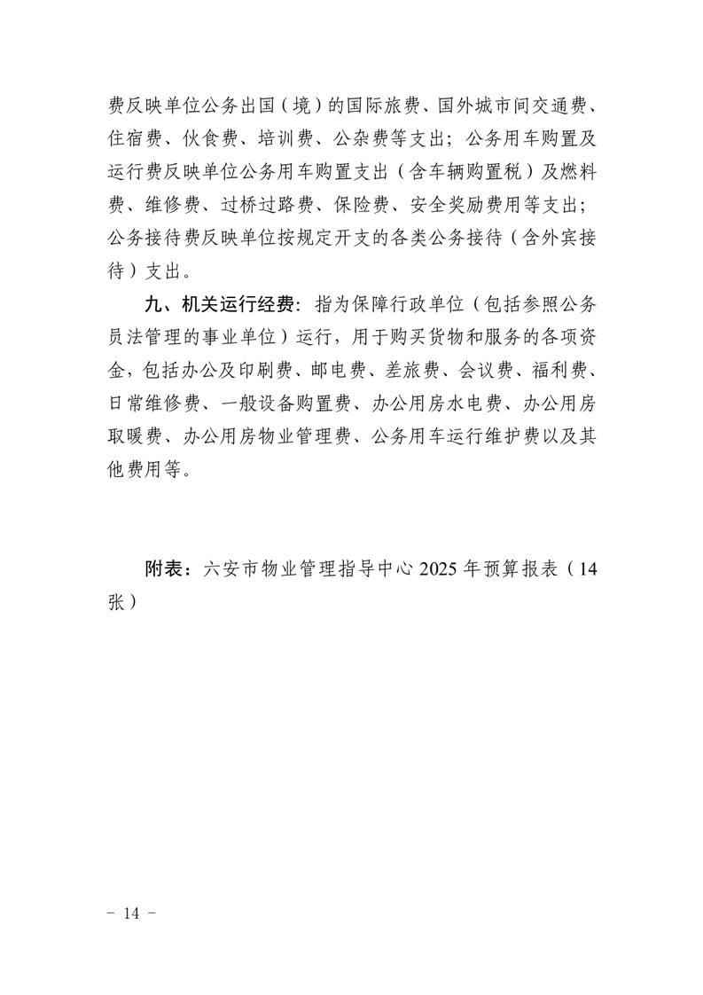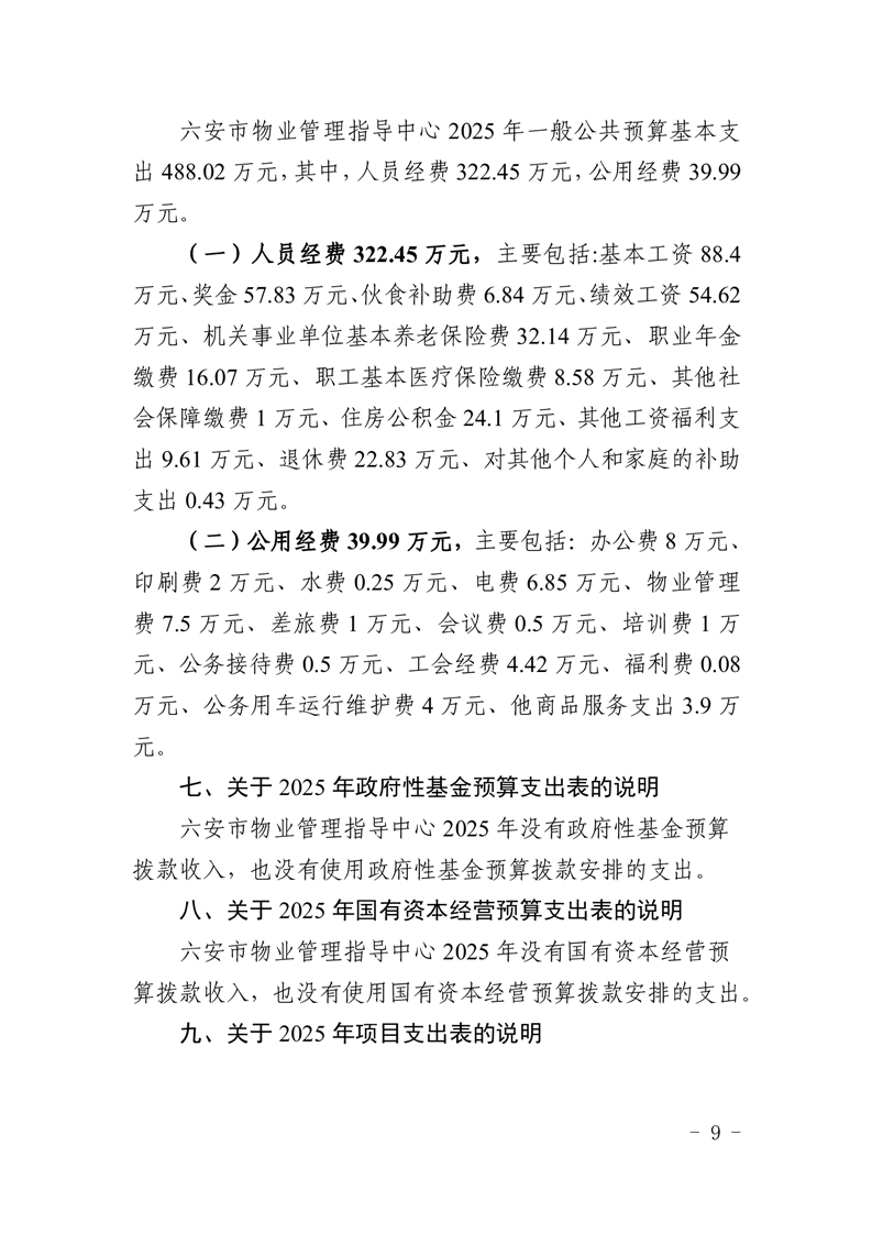 六安市物业管理指导中心2025年单位预算