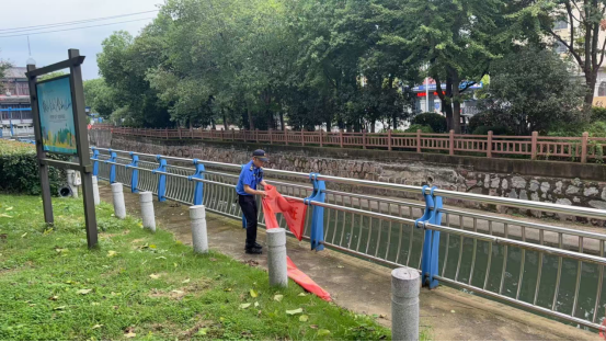 此外,中队还针对破损条幅、废弃树枝、地面残留物等影响环境整洁的“顽疾”开展清理工作。对辖区内沿街破损、过期的宣传条幅进行全面排查摘除,对绿化带内、道路两侧的废弃树枝及时清运,对人行道路面残留物等进行彻底清除,进一步提升了辖区环境洁净度和出行安全感。