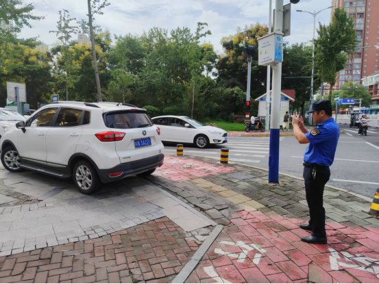 车辆违停不仅影响交通秩序,还破坏城市整体形象。中队安排专人对辖区主次干道、背街小巷的违停车辆进行常态化拍摄取证,通过张贴温馨告知单、违停拍摄处罚等方式,严肃查处机动车、非机动车乱停乱放行为。
