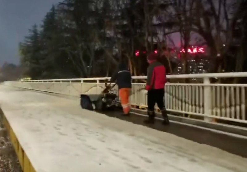 针对桥梁、隧道等重点部位易结冰的情况,市城管局市政处对76座桥梁、3个隧道及城市主干道前置播撒融雪剂开展防凝冻作业。市环卫处督促三区城管部门,组织撒布车、滚刷车、推雪机等机械设备轮番上阵,在主次干道,集中力量开展融雪剂撒布和积雪清理。至20日清晨6时早高峰来临前,所有重点路段已完成首轮全覆盖作业,确保市民上班上学路安全顺畅。整个夜间,作业人员分班轮换、连续作战,做到“人停机不停、雪落人即动”,最大限度减少冰雪对交通的影响。