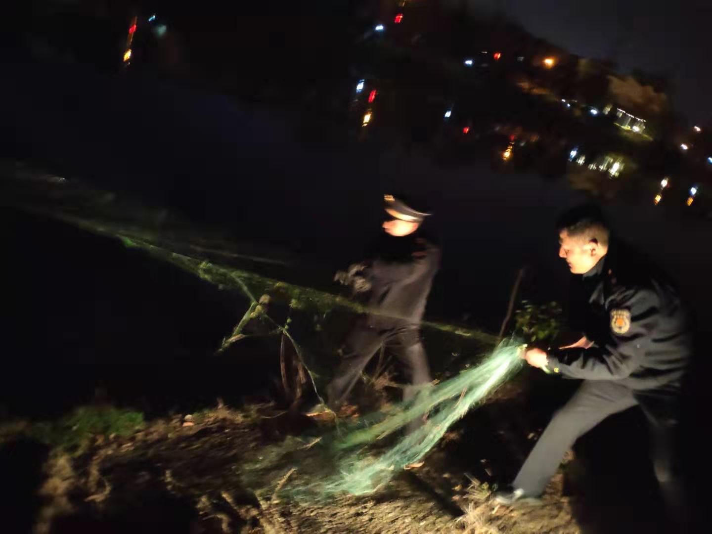 市淠河管理局:打击夜间非法捕鱼 当场收缴粘网800米