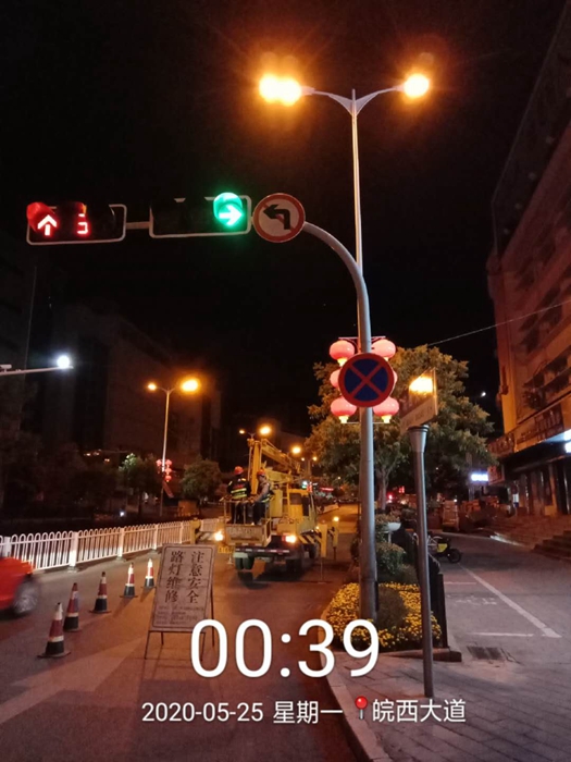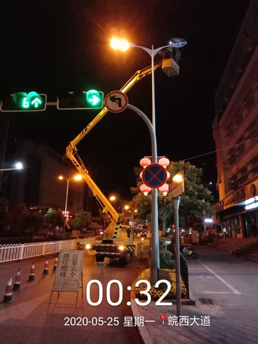 自五月以来,六安市城管局各个单位为助力创建文明城市,都倾尽全力做好工作,市政处照明中心更是担当夜间城市照明的重大责任。为此,不仅中心职工干部日夜奔波大街小巷查巡,招标检修专业工作人员更是夜以继日在市区案点施工维修。5月24日午夜,市区灯光璀璨,行人寥寥,照明中心值班人员还在市区巡查,在响铃庵路发现有一盏路灯未明,经检查是线路短路造成,于是立即维修,恢复照明。随后辗转到皖西路一红绿灯处又发现一处。修复后,已是新的一天了。路灯等照明设施维护工作就是这样平凡,周而复始,旨在黑夜不黑,行人无虞。