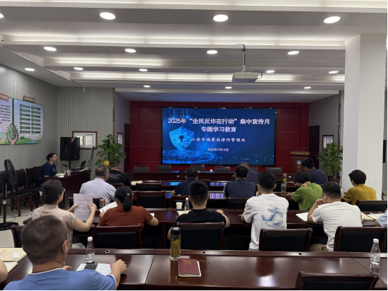 2025年7月5日,为深入贯彻落实《中华人民共和国反电信网络诈骗法》,积极响应国家“全民反诈在行动”集中宣传月号召,市城管局淠河管理处在湿地大讲堂组织开展了专题反诈学习活动。本次活动以“反诈是门必修课,筑牢防线守好责”为主题,通过集中观看反诈宣传视频、学习反诈法律法规及最新防诈手册等形式,全面提升干部职工的识诈、防诈、反诈能力,切实守护个人及单位财产安全。