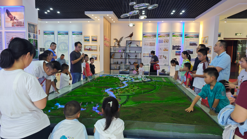 讲座结束后,孩子们走进淠河湿地科普馆,听讲解员吴老师介绍淠河湿地,了解淠河国家湿地公园具体的地点,认识湿地常见的花鸟鱼虫。