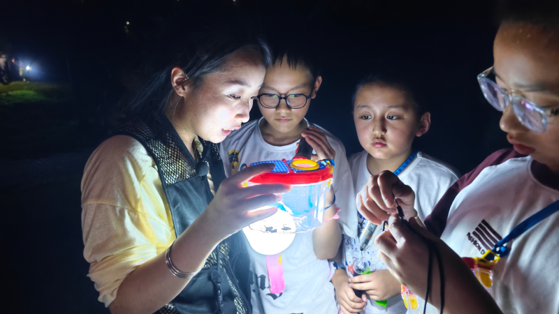 “同学们,黑夜并不是寂静的,竖起耳朵就能听到生命的交响。”19时整,随着夜观科普讲师邬老师的开场,孩子们瞪大眼睛,兴致勃勃的看着屏幕上从未注意过的昆虫照片,听老师介绍身边常见的昆虫种类,化身“小小昆虫学家”。