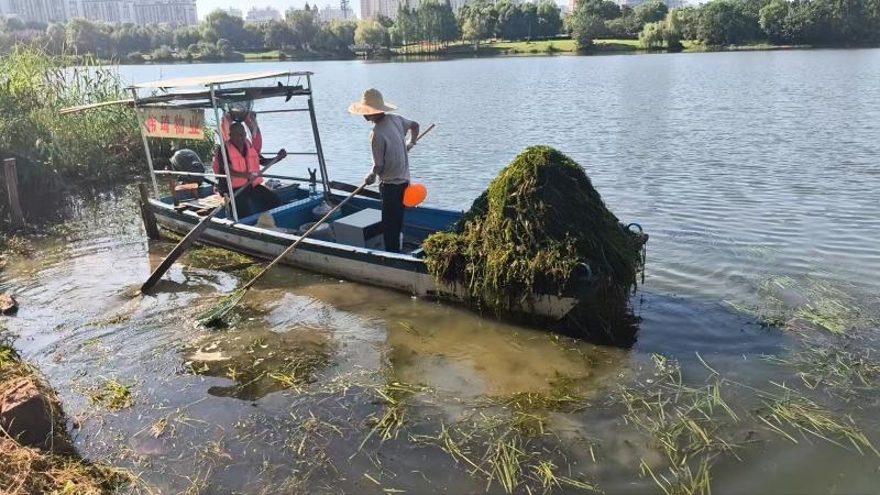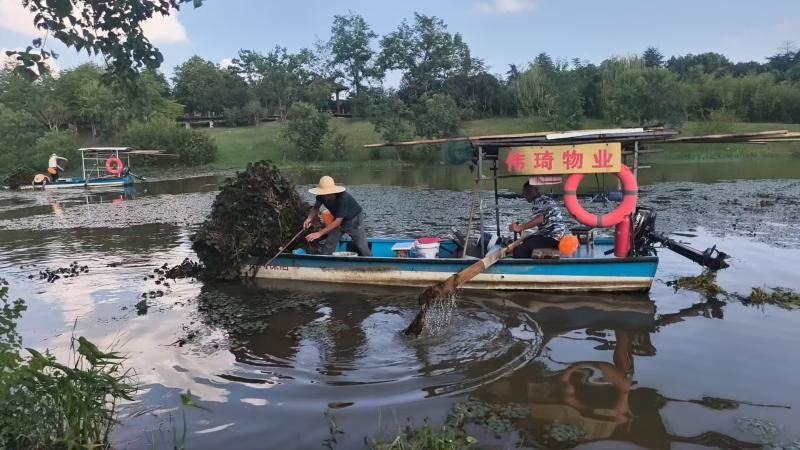 淠河总干渠六安市内全段属于国家一、二级饮用水水源保护区。由于我市近期连续高温以及降雨天气的影响,河道内水生植物快速滋长蔓延,大量水草聚滞各类漂浮垃圾,影响水质安全。针对淠河总干渠城区段河道内存在的问题,市淠河管理处强化工作部署,督促水面物业保洁公司制定打捞方案,采取逐段保洁、重点攻关的方案,严格守护好水生态环境。