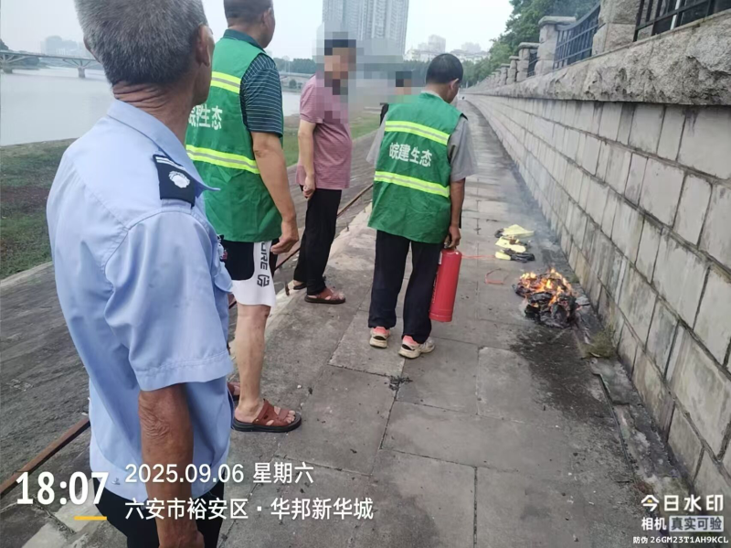 此次专项行动共发放宣传材料200余份,制止焚烧行为200余起,扑灭火情1起。通过严密监视,精准发力,全力保障中元节期间新老淠河城区段环境整洁、市民休闲游览秩序安全稳定。