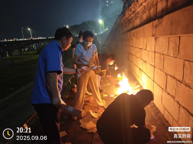 为进一步巩固生态文明城市建设成果,净化河道周边环境,9月6日中元节当天,市城管局淠河管理处加强工作部署,组织队员及物业管理人员,开展不文明祭祀行为专项整治行动。加强宣传引导,利用巡逻车、广播向市民普及禁烧政策,向市民发放《关于禁止在新老淠河城区公共场所焚烧冥纸燃放鞭炮的通告》等宣传材料,倡导文明祭祀。强化巡查巡护,携带灭火设备在重点地段、重点区域开展严密巡查,及时劝止违规焚烧冥纸的行为。