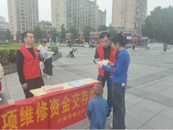 活动现场,市物管中心向周边小区居民派发《六安市物业管理条例》《调整物业专项维修资金交存标准》宣传单等宣传材料,为居民讲解我市物业专项维修资金新老政策变化及交存标准、使用程序等知识。活动现场共发放各类宣传材料近200余份,通过深入群众,进一步帮助居民了解我市维修资金新政策,并为政策推进奠定更好的群众基础。