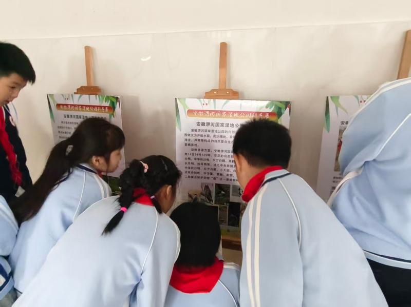 互动竞猜强效果。在答疑解惑环节,同学们学习了什么是湿地,认识到鸟类可以从外形、声音和习性来辨别,并掌握观鸟要点和方式;通过观看珍稀鸟类明信片,同学们对黑鹳、中华秋沙鸭等濒危物种的生存现状有了更深刻的理解,打开了人与自然和谐相处的知识大门;在有奖竞猜环节中,同学们通过竞答,积极思考、认识了不同的湿地类型、鸟类的分类、淠河湿地的功能区划分,并获得印有湿地图案的礼品,鼓励孩子们将生态保护理念带回家庭和社区,把湿地保护具象在身边,牢记在心中。