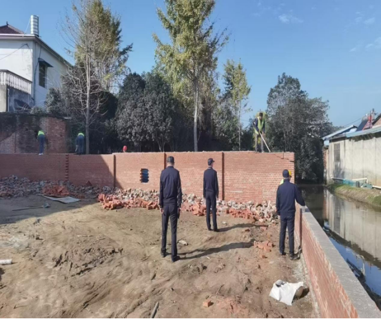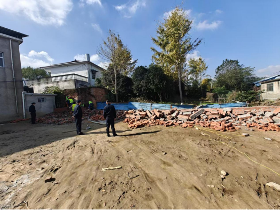 此次拆除的第一处违规建筑位于周湾村。经查,该处当事人未依法取得相关审批手续,擅自侵占林地资源建设围墙,其行为不仅违反了《中华人民共和国城乡规划法》《中华人民共和国土地管理法》等相关法律法规中关于土地使用和建设许可的规定,也对当地生态环境造成了破坏,属于典型的违规侵占生态空间行为。城管中队在履行完调查取证、责令限期自行拆除等法定程序后,因当事人未在规定期限内履行拆除义务,遂依法对该违规围墙实施了强制拆除。第二处违规建筑位于双桥湾社区。当事人在已纳入政府收储范围的地块内,私自搭建房屋。此类在收储土地上进行的建设活动,严重扰乱了土地收储与供应计划,同样构成了违法建设。城管中队发现该情况后,迅速调查核实,在确认其违法性质并完成相关法律程序的基础上,坚决依法予以拆除,确保了收储土地的完整性和有效管理。