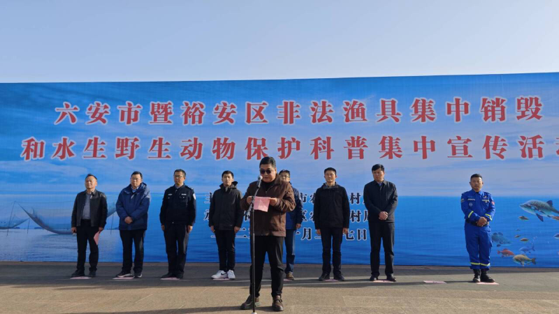 11月27日下午,为巩固禁渔禁捕工作成效,严厉打击非法捕捞和违规垂钓行为,六安市多部门在淠河国家湿地公园六州广场,开展2025年六安市暨裕安区非法渔具集中销毁和水生野生动物保护科普集中宣传活动。