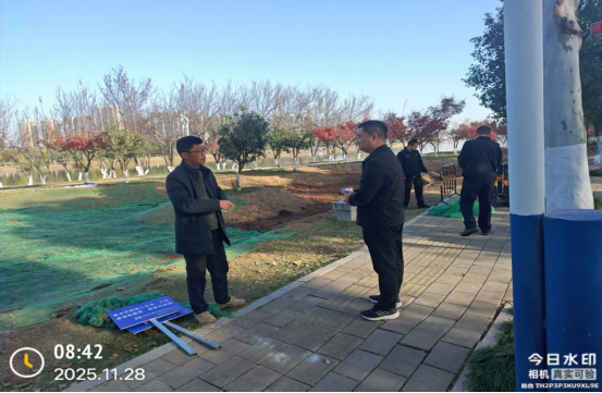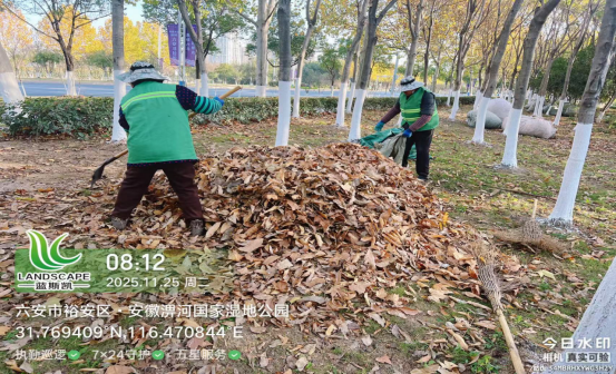 加强园林景观养护。组织园林养护工作人员在老淠河沿线赛道周边的绿地、步道区域,集中清理落叶、修剪枯枝、清理卫生死角等工作,确保赛道周边绿地整洁美观;对树木枝干进行隐患排查清理,避免枯枝影响赛事通行。
