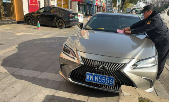 在执法过程中,中队坚持“刚柔并济、法理相融”的执法理念,优化执法方式。对于初次违停、未造成严重影响的车辆,执法人员张贴温馨提示单,详细告知文明停车要求及相关管理规定,引导车主自觉规范停放;发现非机动车乱停乱放时,执法人员主动上前协助车主将车辆移至划定停车位内,现场示范规范停放标准;针对占用人行道、消防通道等重点部位且拒不整改的机动车,执法人员严格遵循法定程序,先通过拍照采集等方式固定证据,再通过违停处理平台向车主发送短信通知,明确要求其在规定10分钟内驶离,对超时未驶离的,依法予以处罚,确保执法既有力度又有温度。