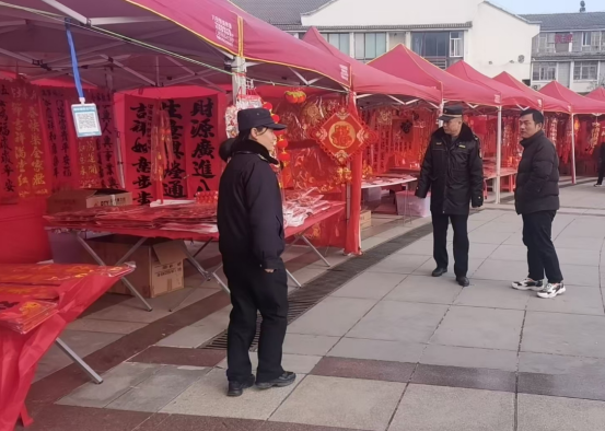 工作中,中队始终坚持“便民利民、科学布局、疏堵结合、安全有序”的原则,在充分考量市民购物需求、道路交通状况及周边居民生活影响的基础上,统筹规划、合理选址,分别在解放中路北塔公园广场、数码步行街南广场等便民点位,规范设置4处临时年货集中经营区域。同时,中队通过现场告知、签订文明经营承诺书等方式,明确经营管理要求,引导各摊主保持合理经营间距,不占道、不扎堆,自觉维护摊位周边环境卫生,做到文明经营、规范经营。