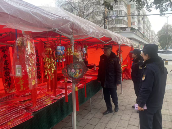 新春佳节临近,年味日渐浓厚,年货消费也进入集中高峰期。为切实保障辖区市容环境秩序,满足市民集中采购春联等年货的需求,鼓楼城管中队提前部署、主动作为,扎实推进临时年货摊点群的规范设置与精细化管理工作,全力营造整洁有序、安全祥和的节日氛围。