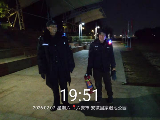 从白天到深夜,队员们与养护人员的身影穿梭在湿地公园内,用宣传引导传递文明理念,用严阵以待守护一方平安,在有效防范火灾风险的同时,让传统节日在安全与文明的氛围中更有温度。