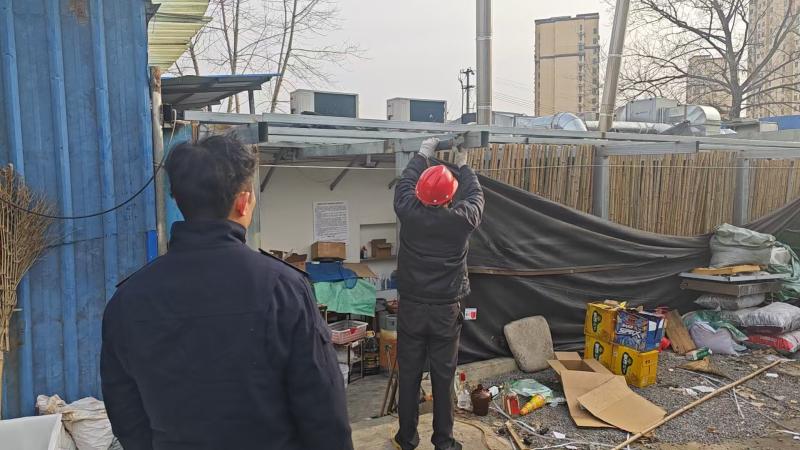 ”一处约30平方米的违法彩钢瓦棚已依法拆除,彻底清除了周边环境安全隐患;盛世嘉园小区5栋1101室一处约15平方米、友谊南苑31栋顶楼一处32平方米的2处违规搭建被成功拆除,恢复了小区原有规划风貌;星光商业街红鸾小厨内5间违规搭建凉亭,目前企业负责人已安排人员自拆,拆除工作稳步推进中。