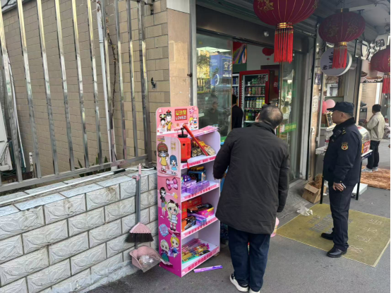 针对春节期间市容管理的特点与需求,中队科学部署执法力量,加大对辖区重点路段、商圈、居民区周边的巡查管控力度,针对群众反映强烈的市容乱象开展巡查整治。执法队员坚持文明执法、服务为先,扎实推进占道流动摊点清理取缔工作,保障道路通行顺畅;严格规范店外经营行为,督促商户落实“门前三包”责任,及时清理违规摆放的商品物料;全面整治乱晒乱挂现象,细致清理违规张贴的条幅广告,让城市环境在节日里更显清爽。