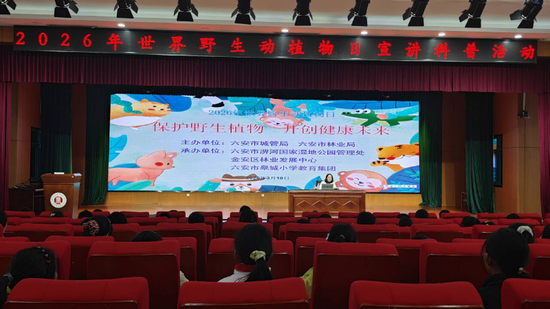 2026年3月迎来了第十三个“世界野生动植物日”,为积极响应“保护野生植物 开创健康未来”的号召,强调保护生物多样性与人类福祉的紧密联系,3月10日下午,由市城管局、市林业局主办,市淠河国家湿地公园管理处、金安区林业发展中心、市皋城小学共同承办,一场别开生面的世界野生动植物日主题宣传活动在皋城小学报告厅成功举办,现场约200余名师生参加。