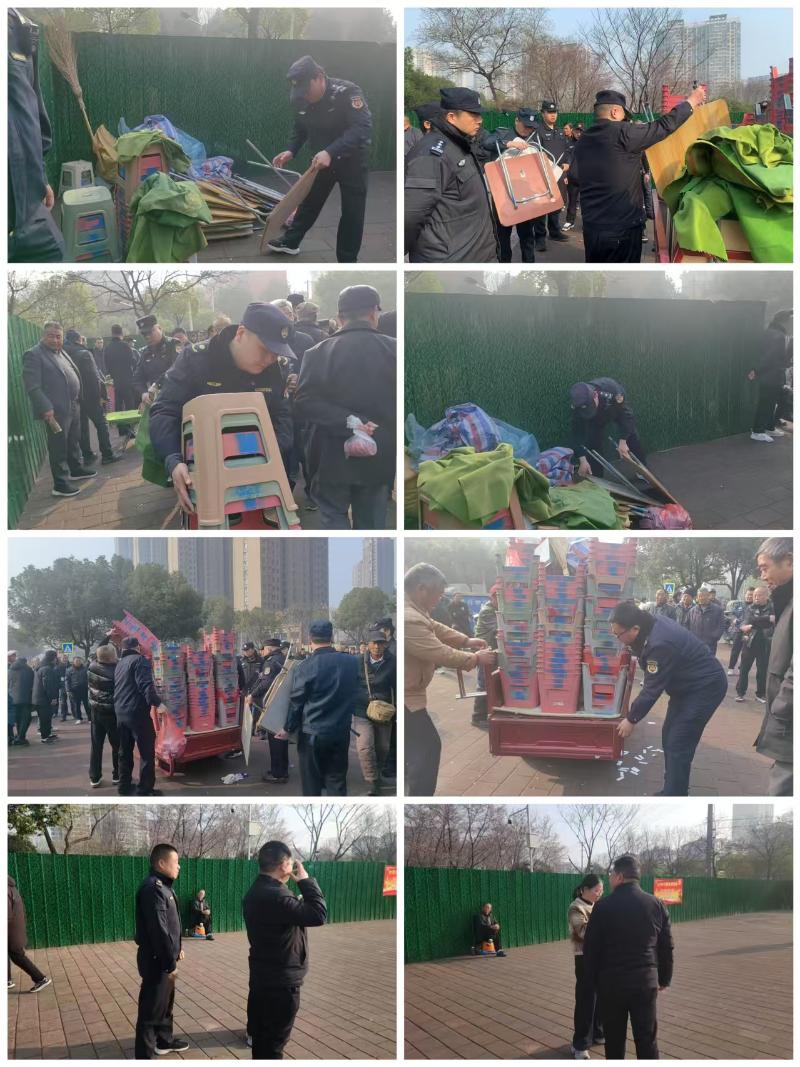 三里桥城管中队联合多部门开展梅山北路三角带游园占道打牌集中整治 还民清朗休闲空间