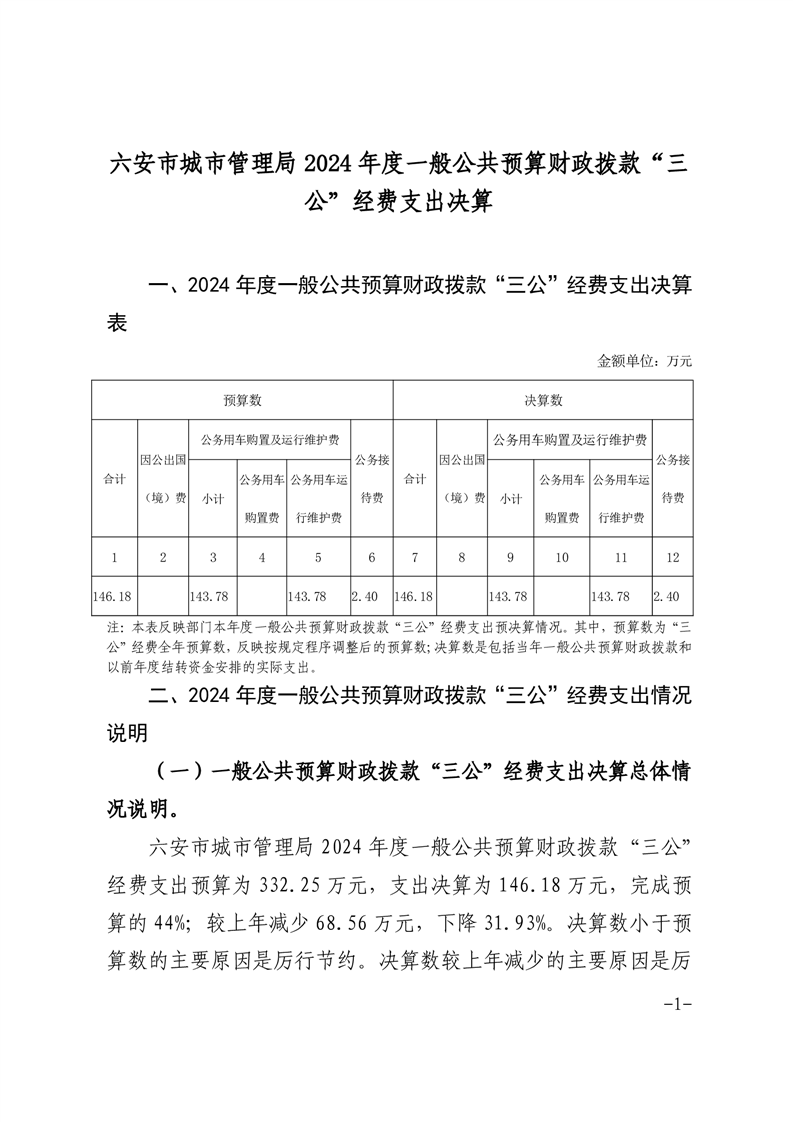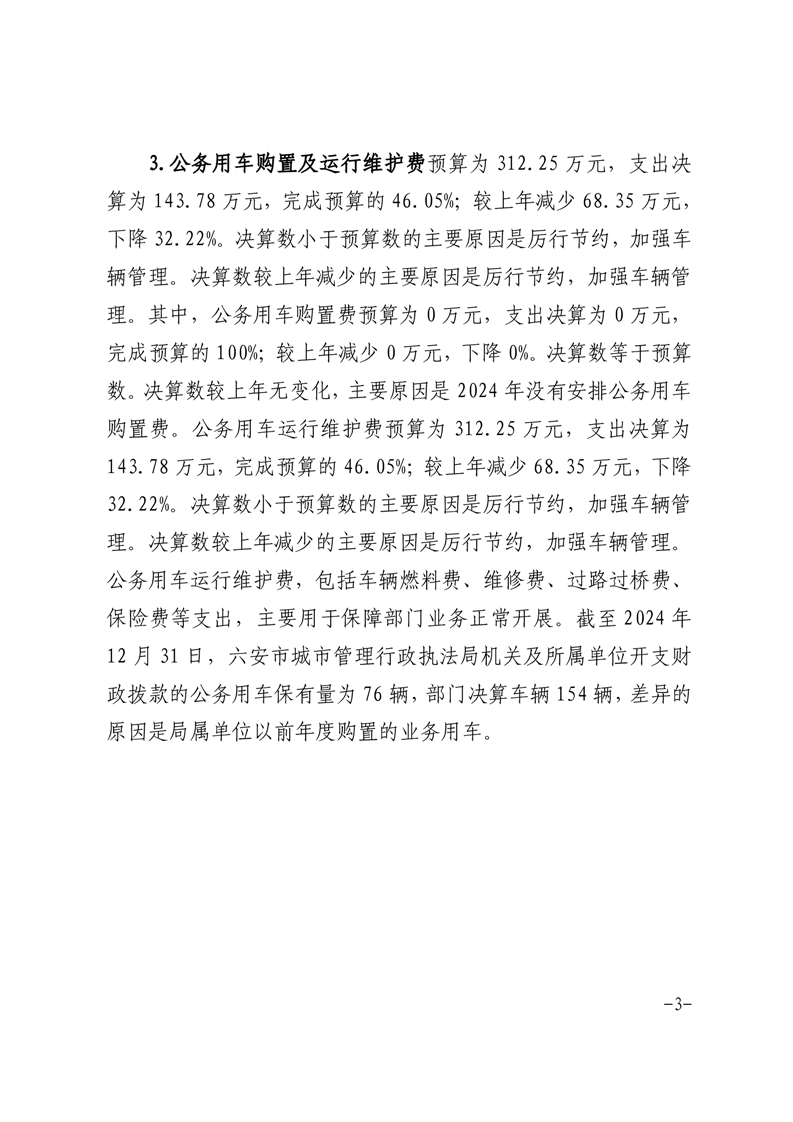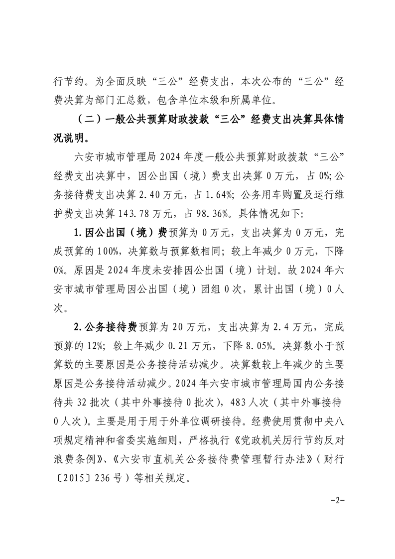 六安市城市管理局2024年度一般公共预算财政拨款“三公”经费支出决算