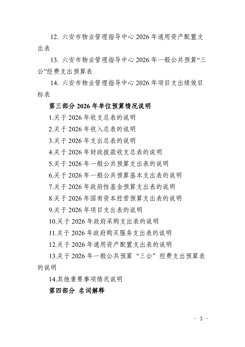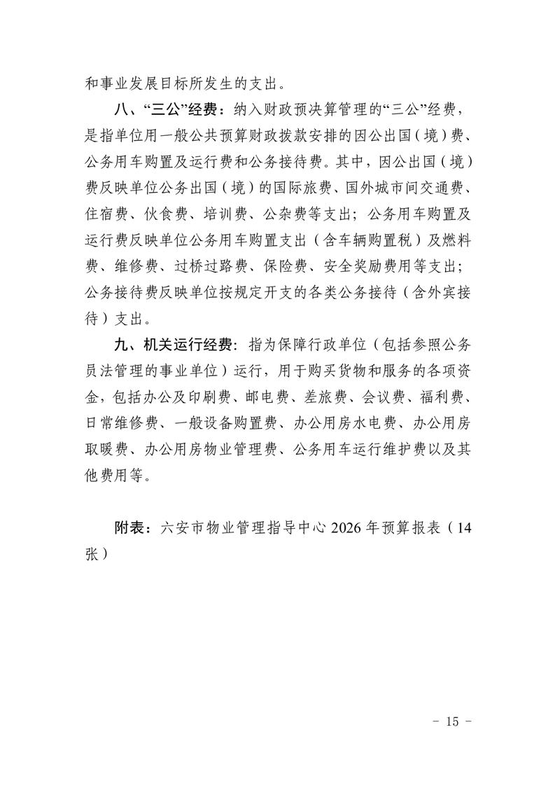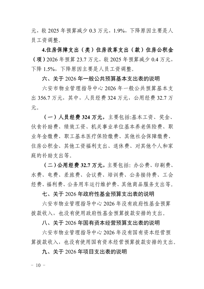 六安市物业管理指导中心2026年单位预算