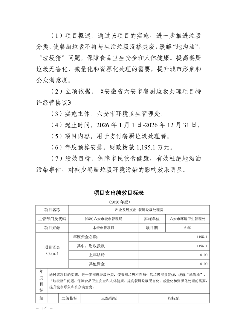 表十四、六安市环境卫生管理处2026年项目支出绩效目标表.pdf标签: