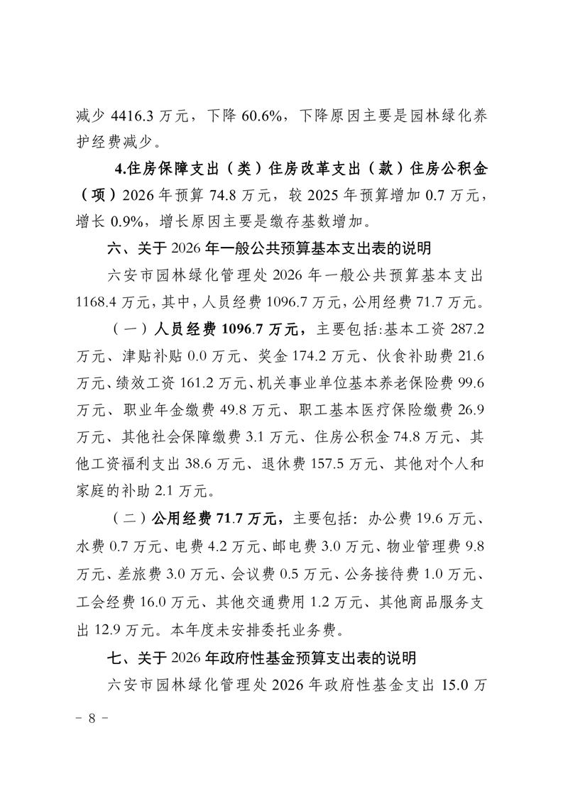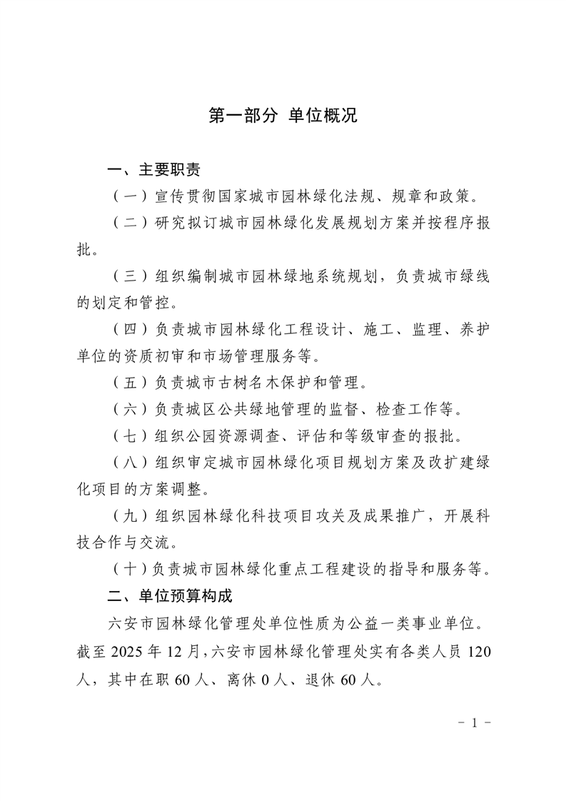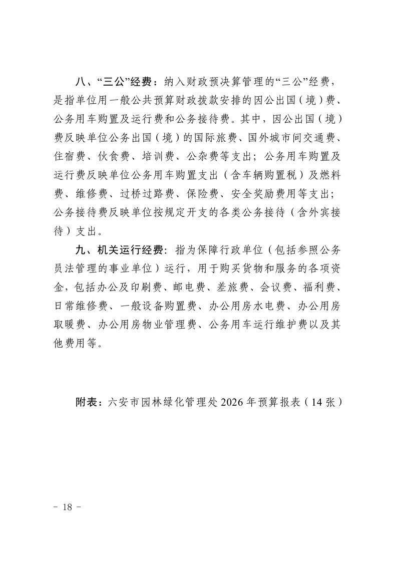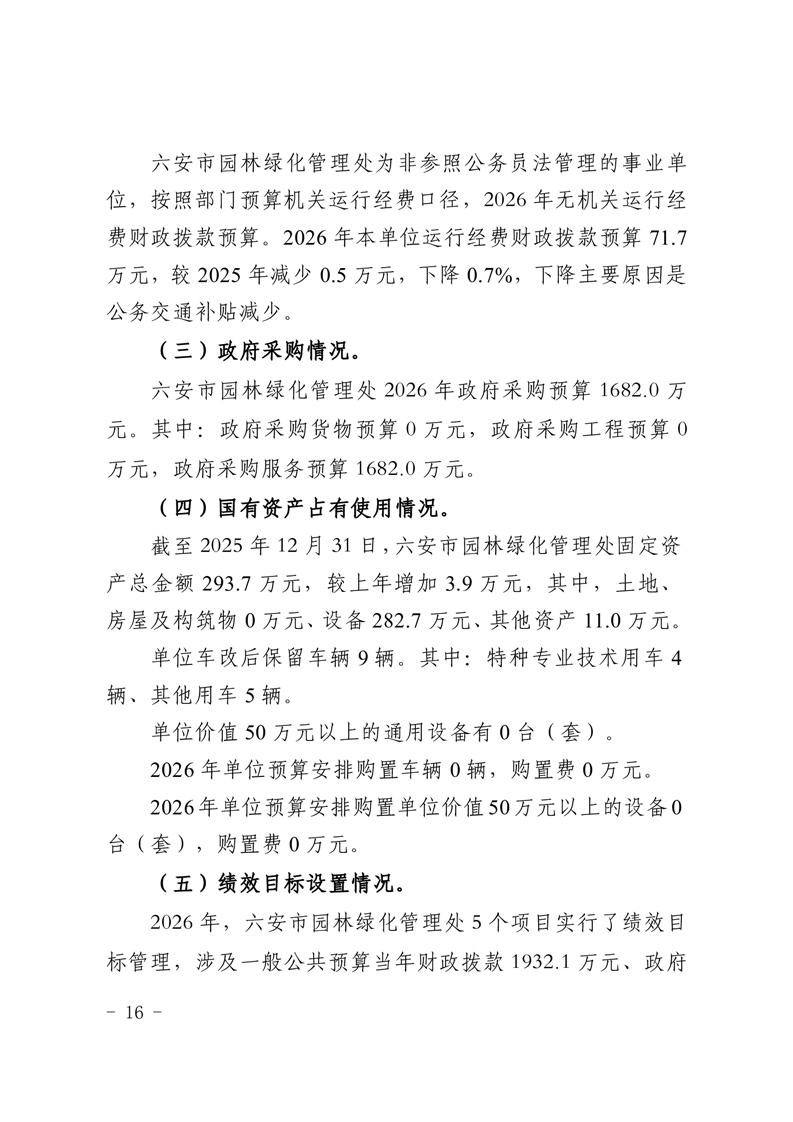六安市园林绿化管理处2026年单位预算