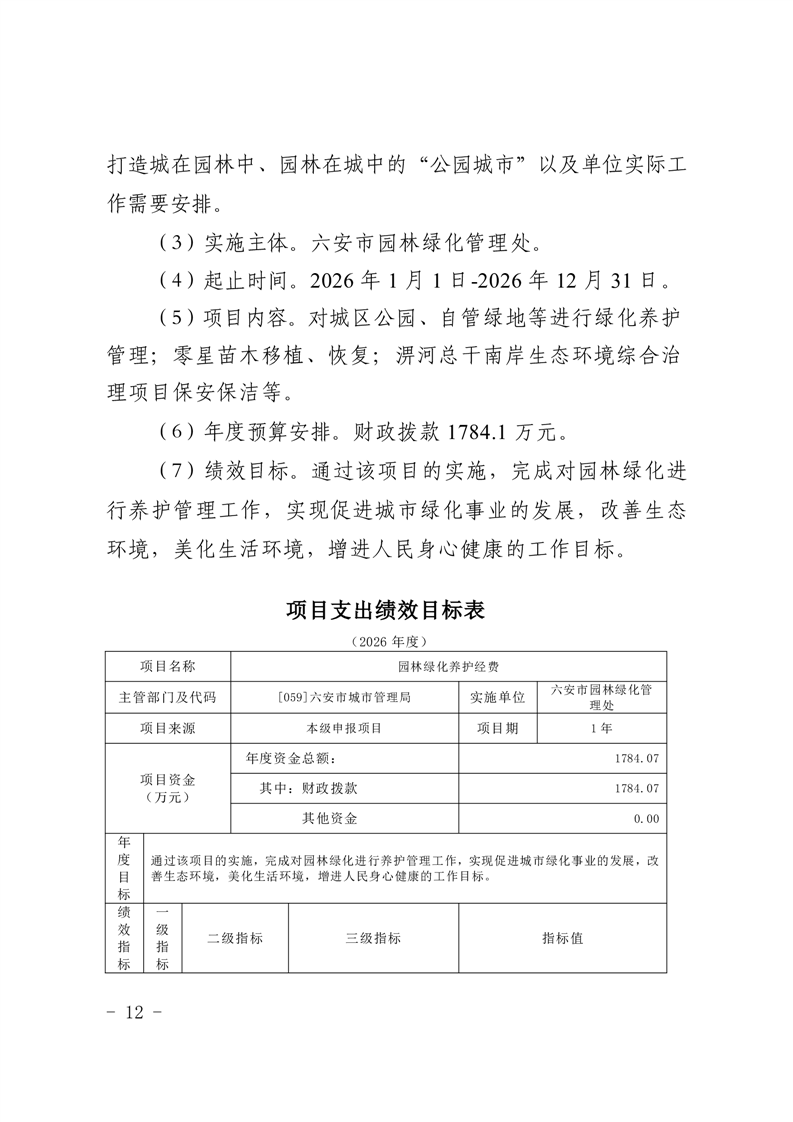 表九、六安市园林绿化管理处2026年项目支出表.pdf