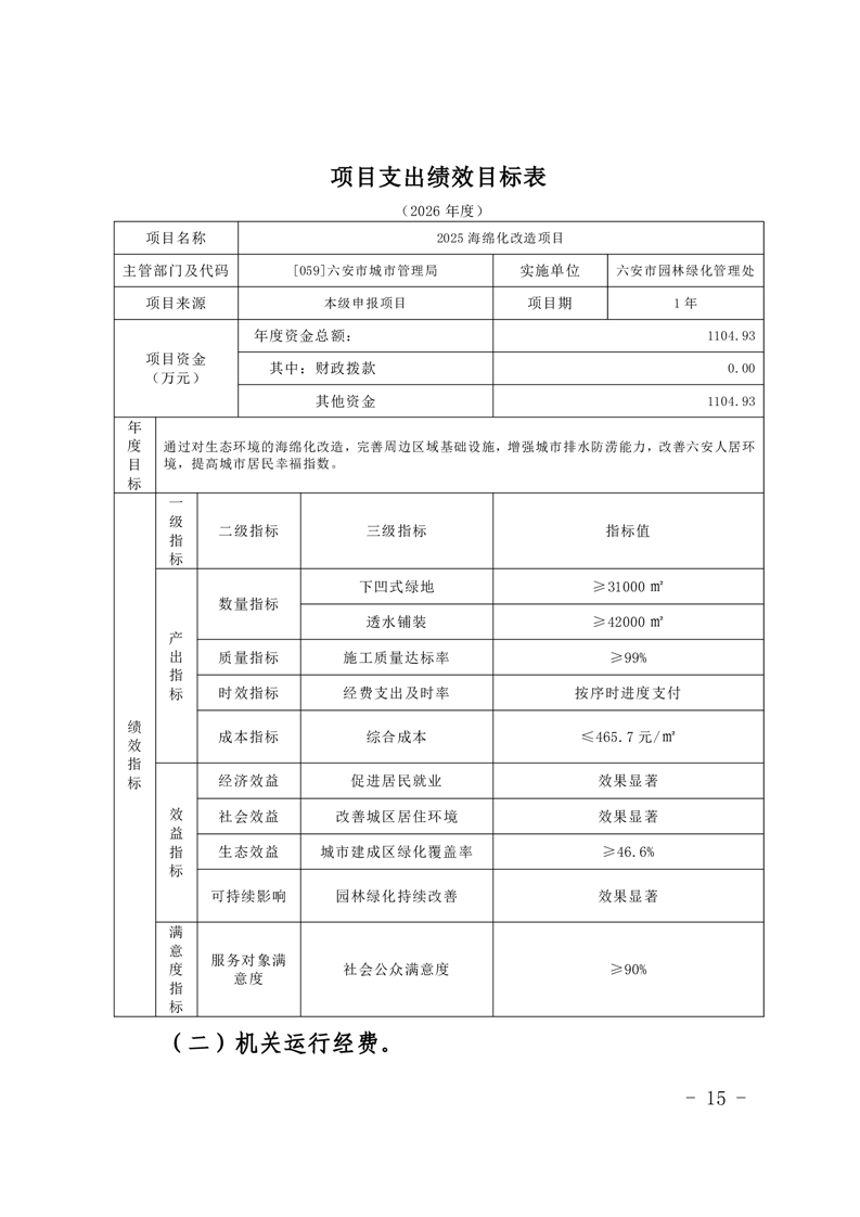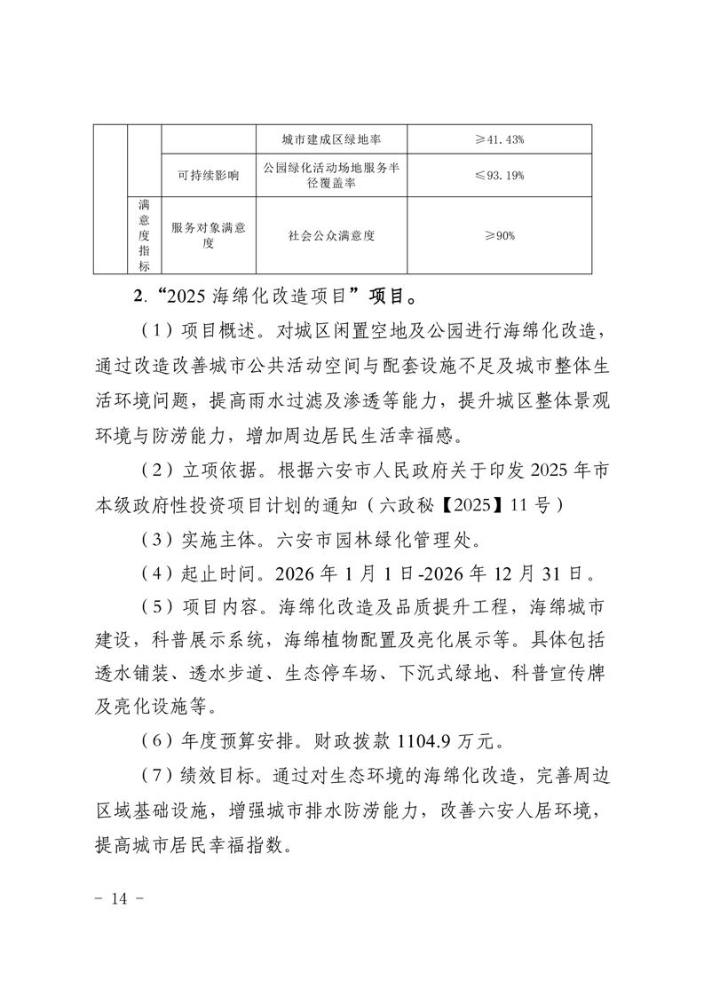 表十四、六安市园林绿化管理处2026年项目支出绩效目标表.pdf标签: