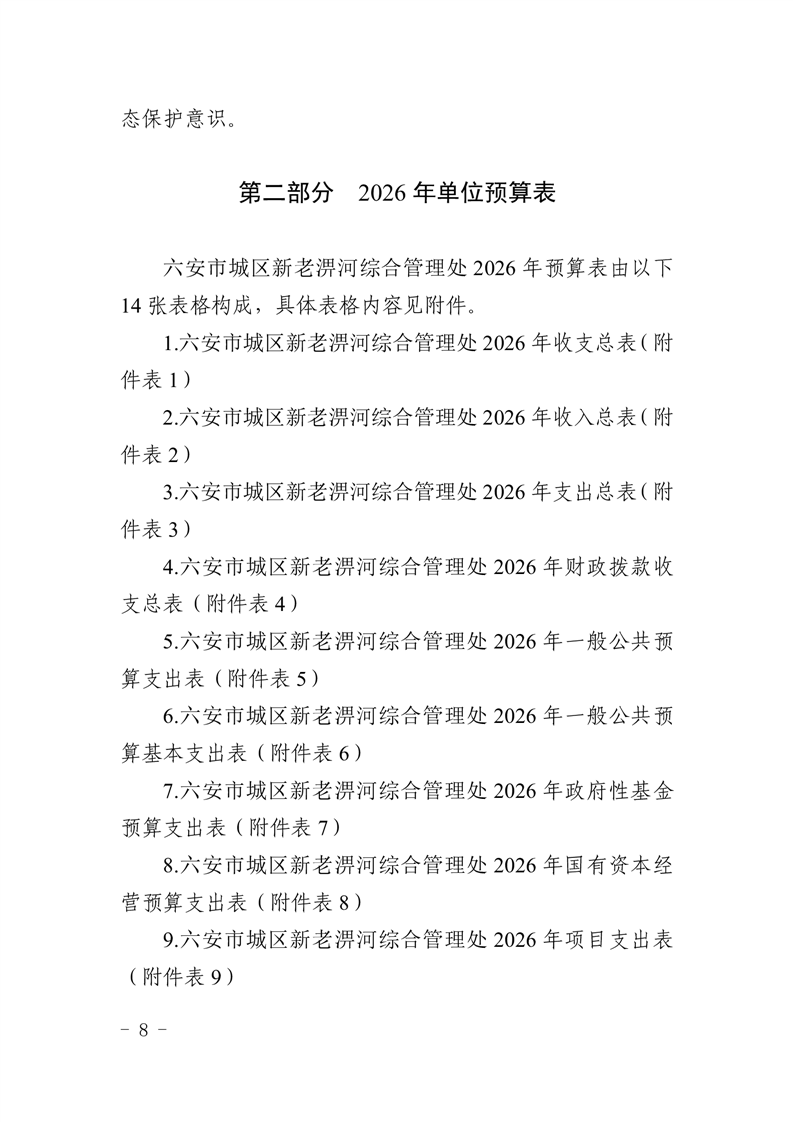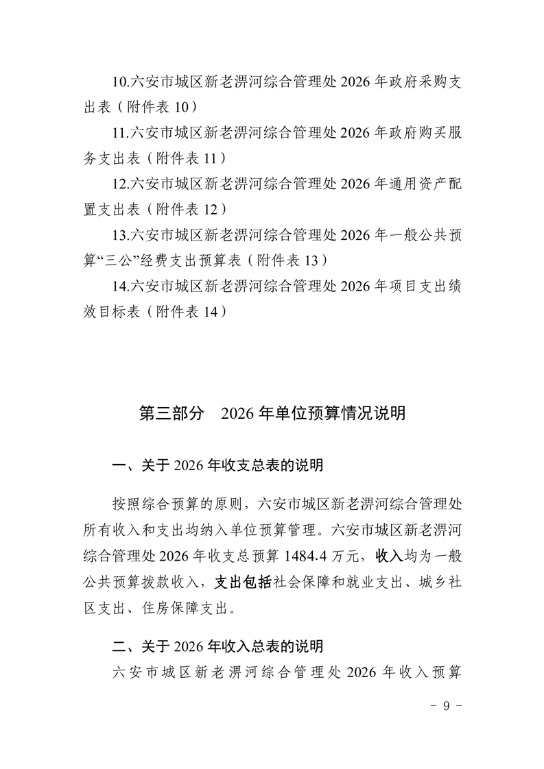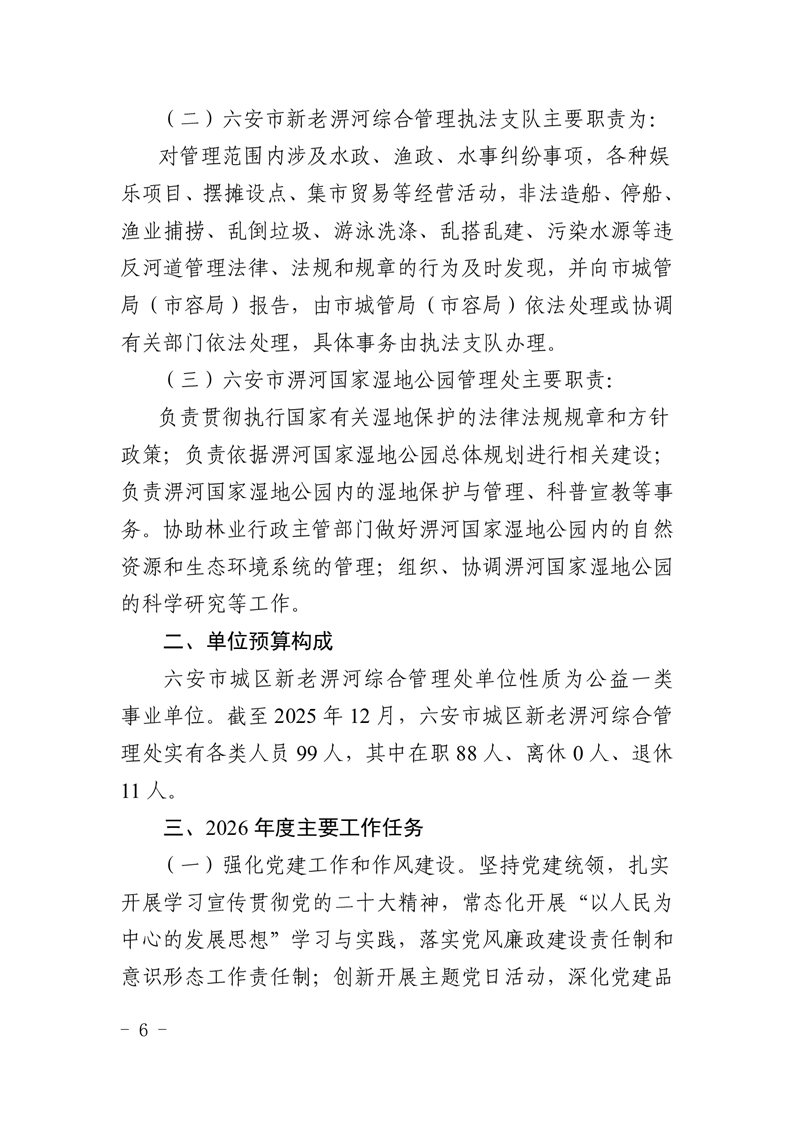 六安市城区新老淠河综合管理处2026年单位预算