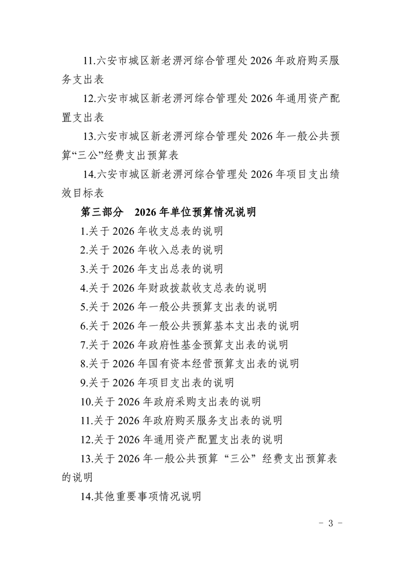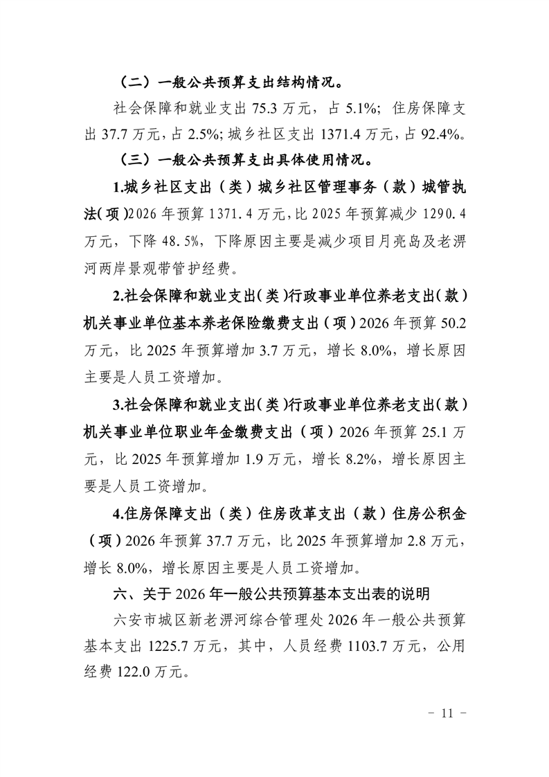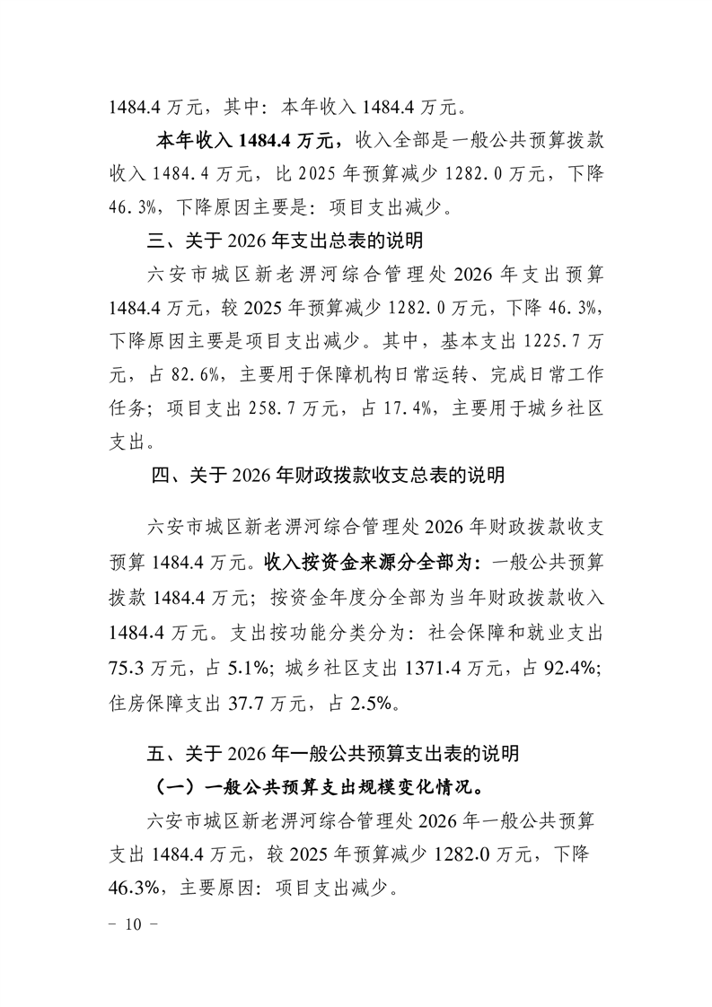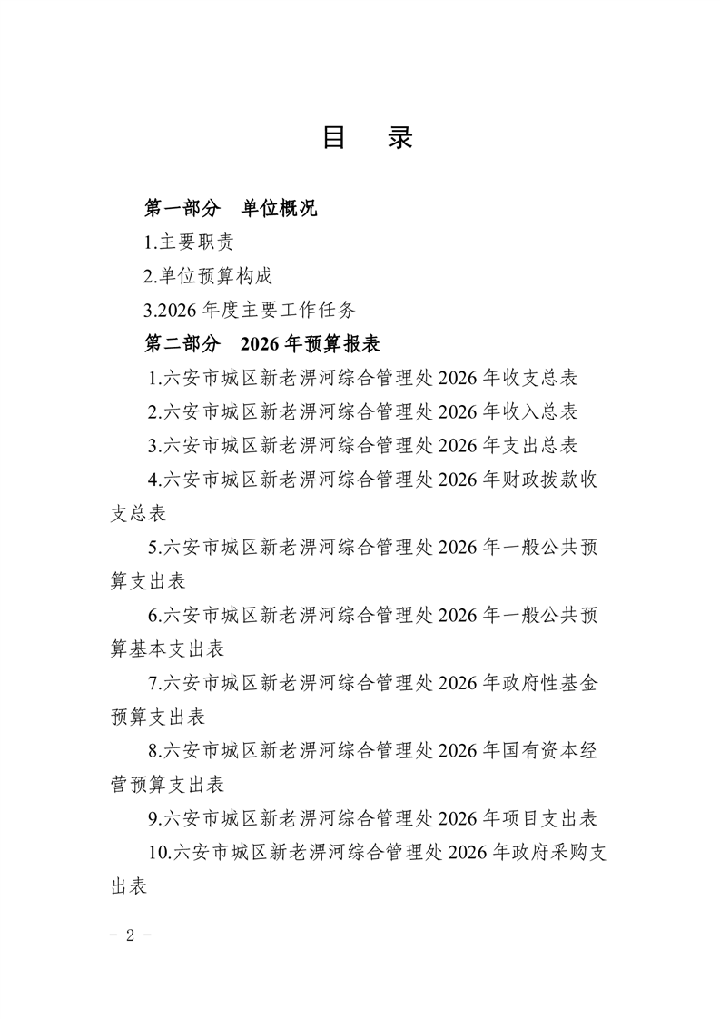 六安市城区新老淠河综合管理处2026年单位预算