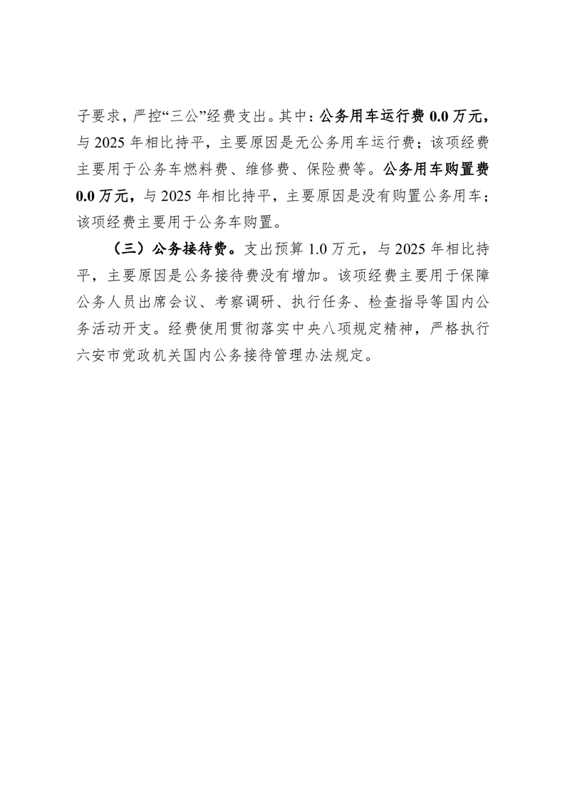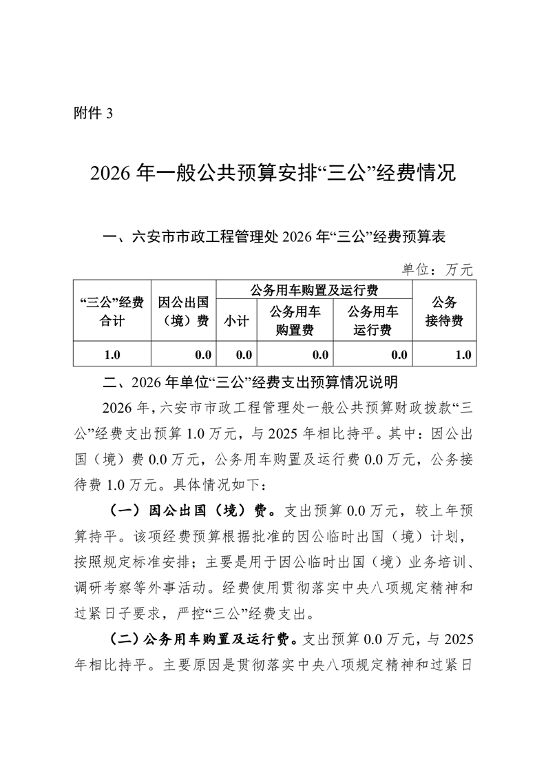 六安市市政工程管理处2026年一般公共预算安排“三公”经费情况