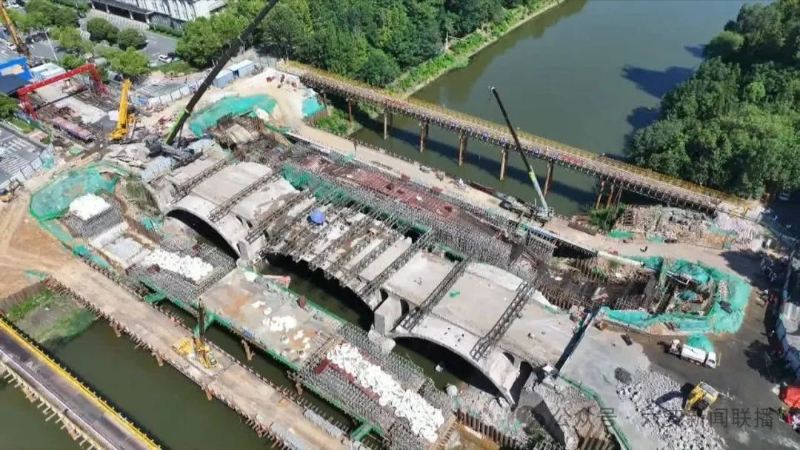 记者在五里墩大桥拆除重建工程施工现场看到,老桥两侧加宽段桥拱拱肋部分的拆除作业正在有序进行中,施工单位严格遵循安全施工要求,合理调配机械设备与施工人员,确保拆除过程高效、安全。同时主桥两边的边幅桥支架搭设全部完成,已完成西北角斜腿拱圈的砼浇筑。