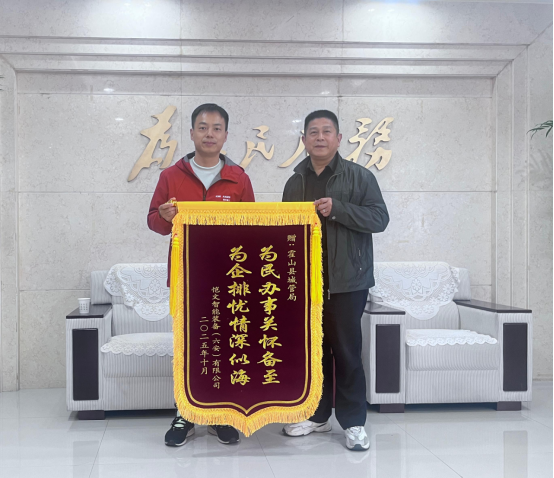 在县城管局的全力保障下,恺文智能装备公司新厂投产仪式圆满结束。为表达感谢,公司负责人专程来到县城管局,送上锦旗致谢,对县城管局在仪式期间的优质服务给予高度评价。