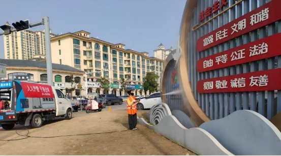 城管局在所有洒水车、扫路车、垃圾清运车等41辆作业车辆上悬挂了“环卫守护洁净家园 共护环境清爽过大年”等宣传条幅,让保洁车辆成为流动宣传载体,潜移默化引导市民爱护环境。同时,发布倡议书,呼吁居民自觉清理房前屋后杂物,规范投放生活垃圾,共同守护城市洁净。