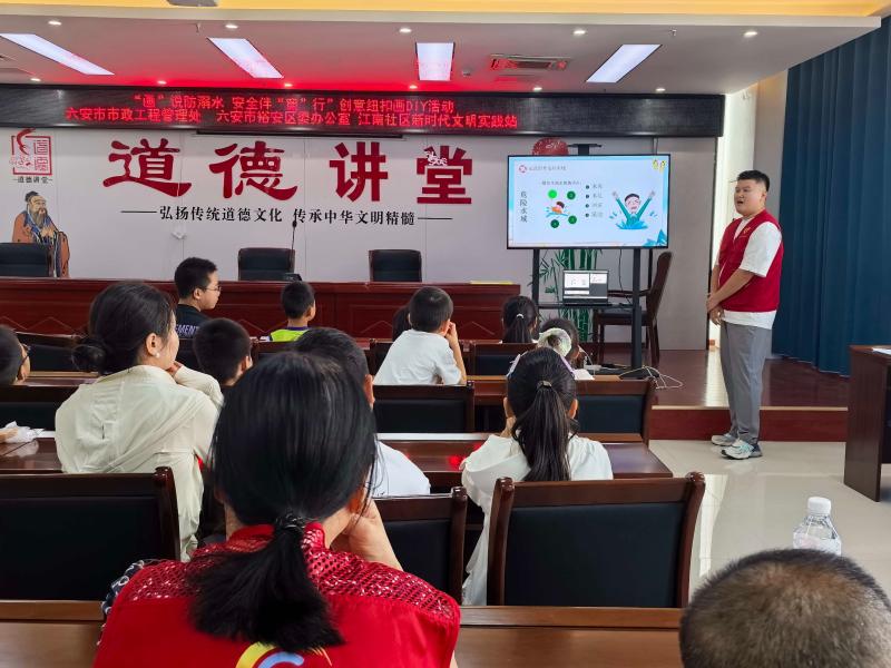 夏季,是溺水事故高发期,对少年儿童进行多渠道、多方位的防溺水安全教育,提高少年儿童的自我保护意识和自我保护能力是十分重要的。2025年7月25日,六安市市政工程管理处、六安市裕安区委办公室,江南社区新时代文明实践站在江南社区大讲堂联合举办一场“画‘说防溺水,安全伴”童“行创意纽扣画DIY活动,广泛邀请了社区少年儿童和他们的监护人,开展了一次生动有趣的防溺水公益课程。