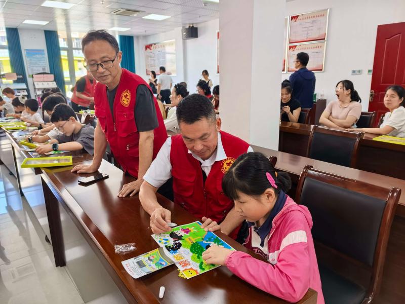 志愿者首先带孩子们学习“六不准”等防溺水的有关知识,让孩子们深刻认识到溺水事故的严重后果,现场讲解和与小朋友手工互动等方式进行指导,充分发挥孩子们的想象力,用创意纽扣在纸上认真粘贴充满童趣和教育意义的防溺水主题画,在快乐中学习掌握了安全知识,强化了少年儿童防溺水意识和自救能力,全力守护少年儿童生命安全。