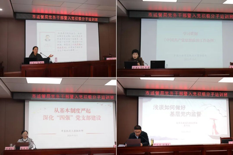 党务干部培训重在规范基层党组织建设各项工作,提升抓党建工作的思想认识和业务能力;入党积极分子培训重在学习党章党史,明确肩负责任和努力方向……10月22日至25日,市城管局举办党务干部暨入党积极分子培训班,落实年度党建工作目标任务,提升党务工作骨干能力素质,提高党建工作规范化水平。
